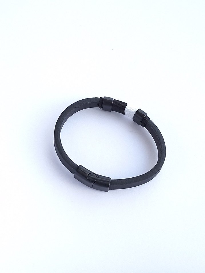 Siyah renkli, minimalist biker tarzı erkek bileklik, sağlam toka ile rock punk havası katıyor. Renkli detaylarla sade tasarım.