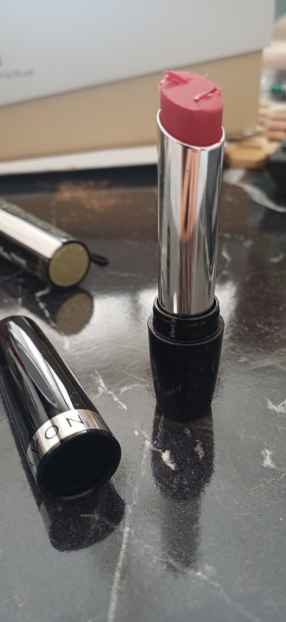 Parlak bitişli pembe renkte ruj, dudaklara canlı ve pürüzsüz bir görünüm sağlar.