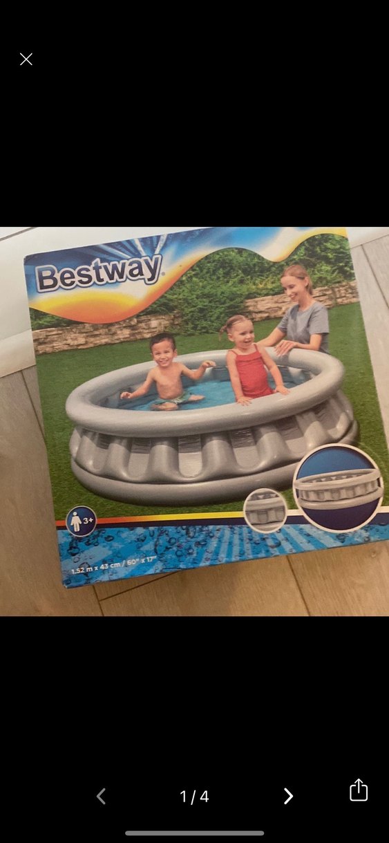 Bestway markalı gri şişme çocuk havuzu, 132x43 cm ölçülerindedir ve 3 yaş ve üzeri çocuklar için uygundur.