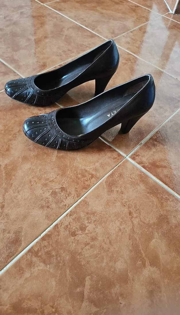 Kahverengi klasik topuklu stilettolar, ofis için uygun goth tarzında.