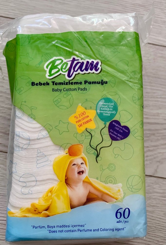 Betam bebek temizleme pamuğu %100 saf pamuktan üretilmiş olup, parfüm ve boya içermez, hassas bakım sağlar.