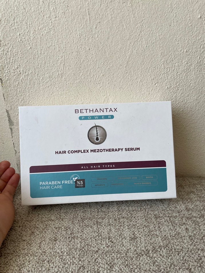 Bethantax paraben içermeyen saç kompleksi mezoterapi serumu, tüm saç tipleri için uygundur ve saç bakımını destekler. ♂️saç mezoterapi si iki kapsul kullanılmıştır sadece