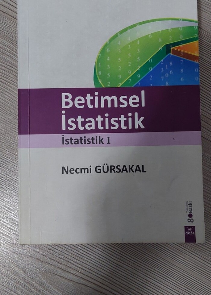 Betimsel İstatistik 1-Necmi Gürsakal 8. Baskı-Dora Basım Yayın Dağıtım İkinci elden almıştım. Birkaç satırın altı çizili ve küçük küçük notlar yazılı. Genel olarak temiz.