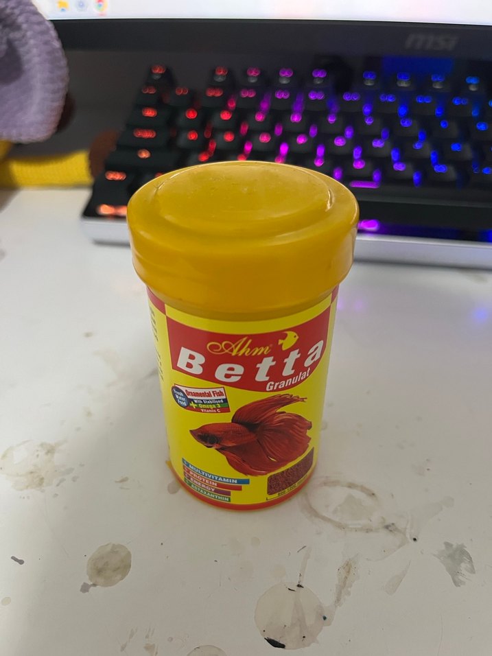 Betta balıkları için granül yem, sarı kapaklı küçük ambalajda, renkli ve kullanışlı. ağzına kadar doludur son kullanma tarihi de fotoğraflarda vardır balığım öldüğü için başka birine yardımcı olmak istiyorum