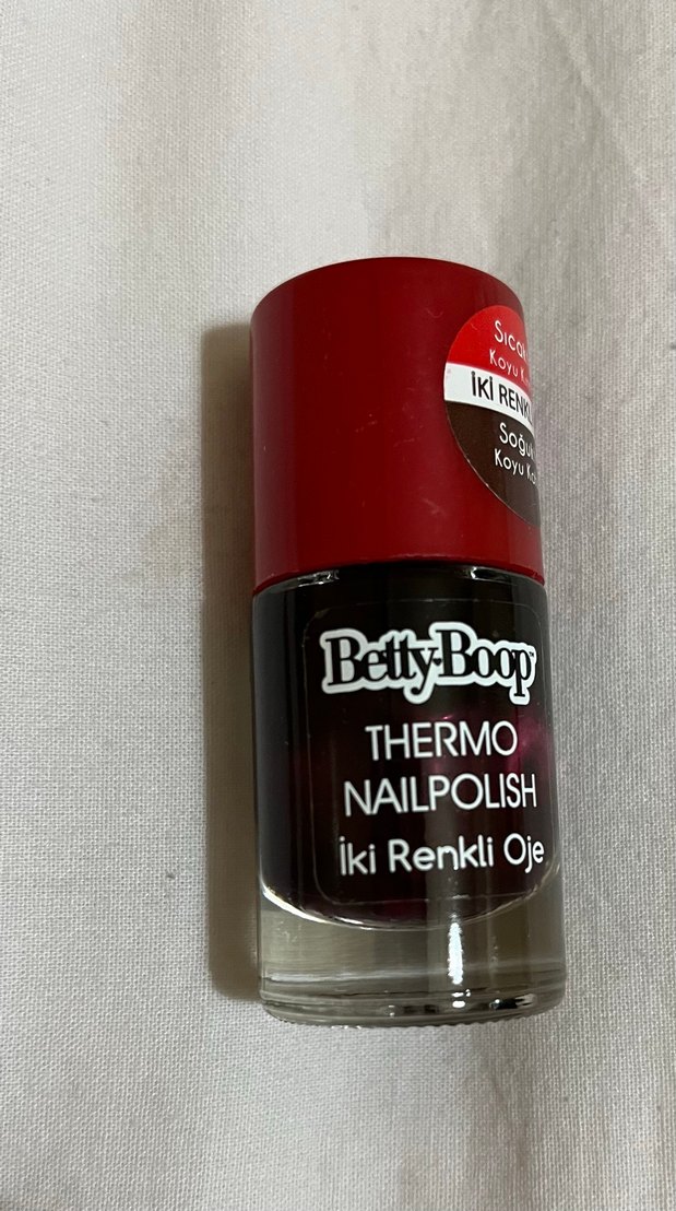 Betty Boop termo oje, sıcaklığa bağlı renk değiştirir ve koyu bordo iki renkli görünüm sunar. Canlı ve pürüzsüz bir bitiş sağlar.