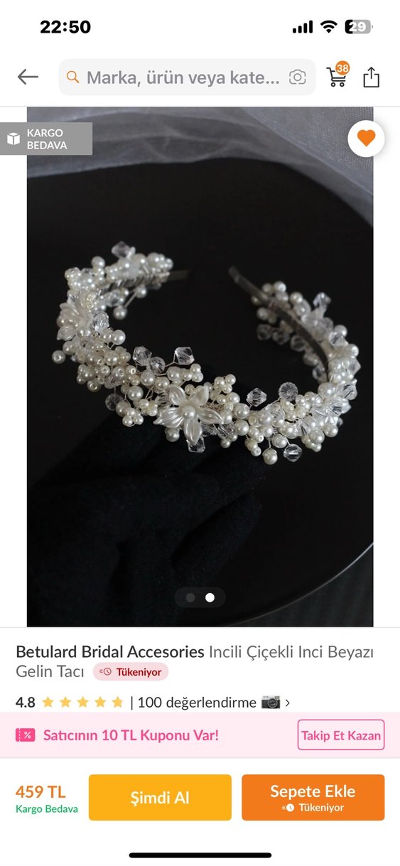 Betulard gelin tacı, inci ve çiçek detaylarıyla klasik ve zarif bir görünüm sunar. Güncel tarzda, gri tonlarla tamamlanmıştır.