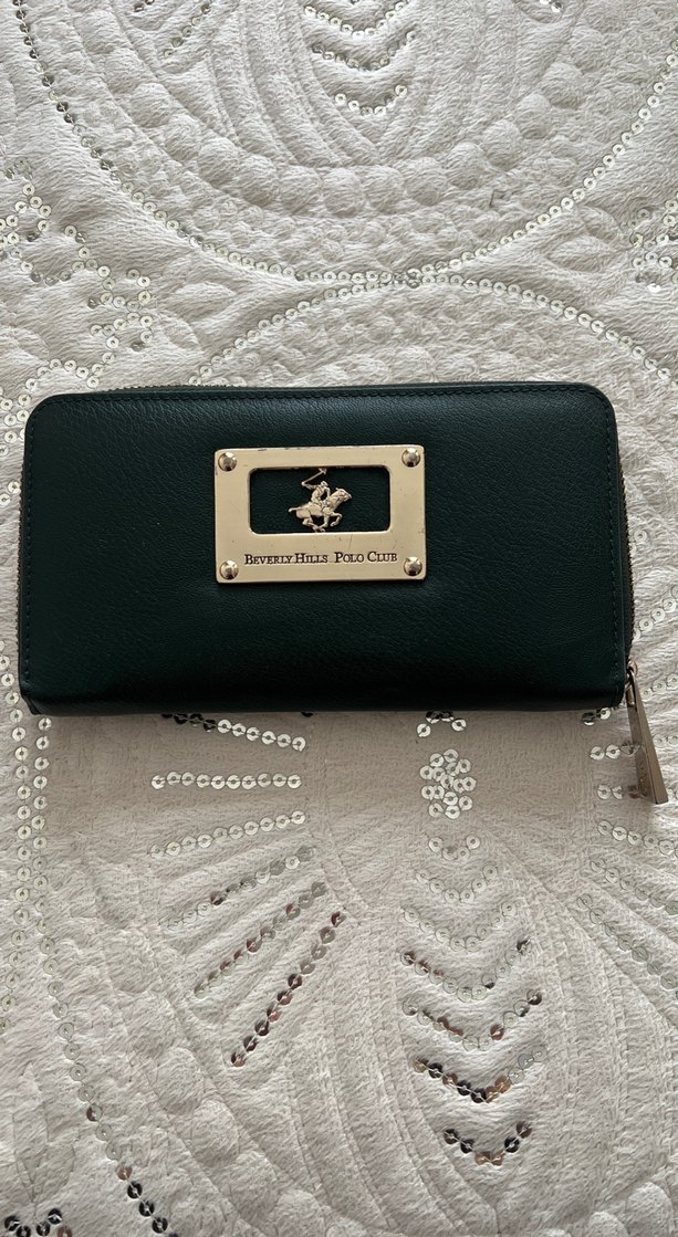 Beverly Hills Polo Club haki deri cüzdan, fermuarlı kapanış ve baskılı logo plakası ile modern klasik iş şıklığını yansıtıyor. Kullanılmadı gibi bişey ama kapalı kaldığı için bazı solmalar mevcut