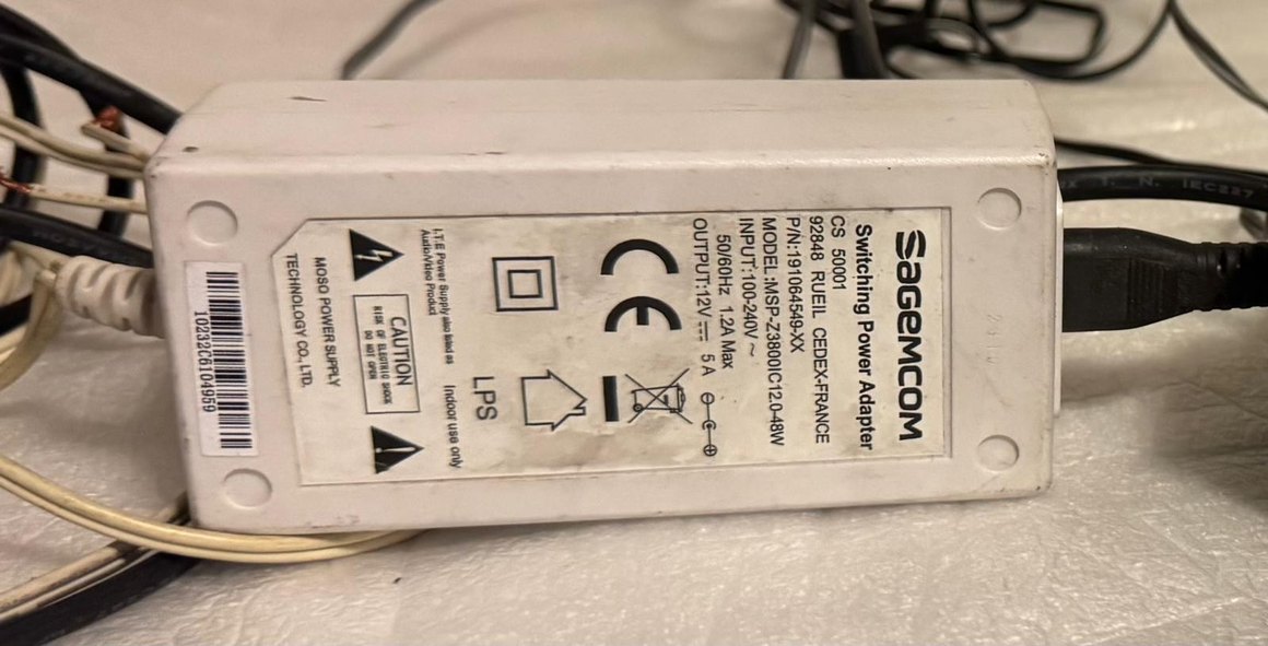 12V 5A çıkışlı, 100-240V giriş uyumlu beyaz güç adaptörü. model MSP-Z3800IC12.0-48W. ⚡