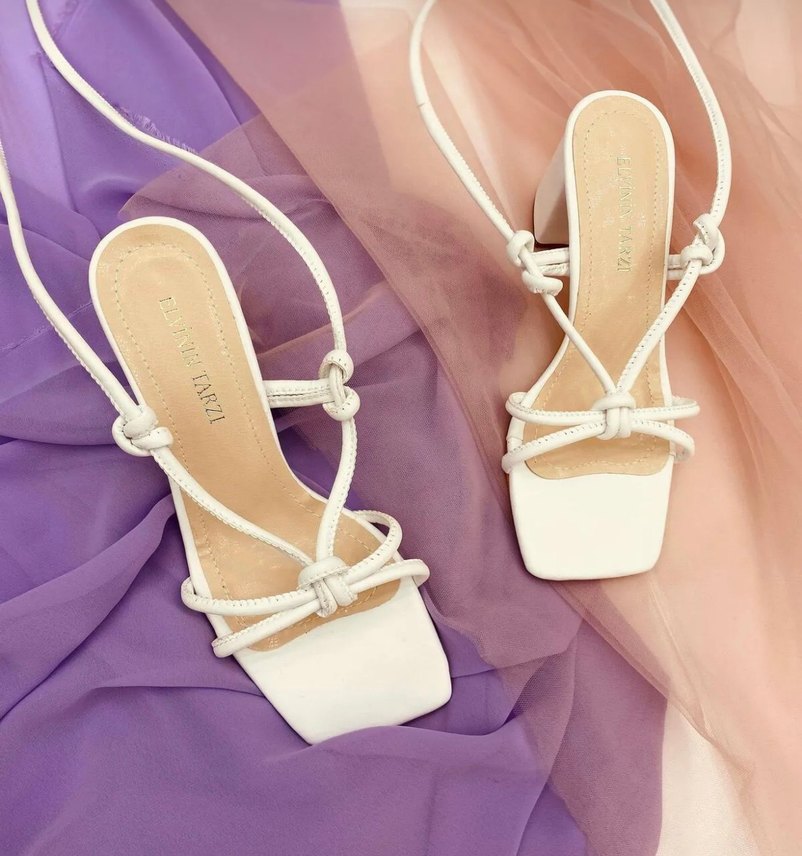 Beyaz 38 numara, 6cm bilekten bağlamalı topuklu sandalet