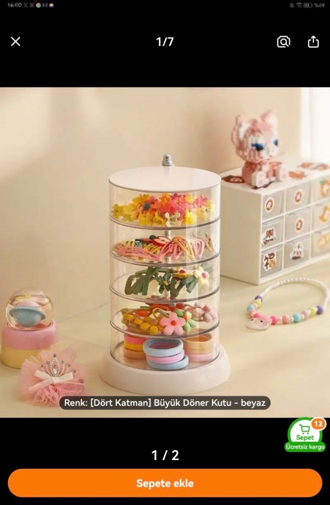 Beyaz renkte, bes katlı döner yapısıyla makyaj ve aksesuarlarınızı düzenli tutar. Şeffaf katmanlarıyla içindekiler kolayca görülür. Yeni kutusunda gōnderilir