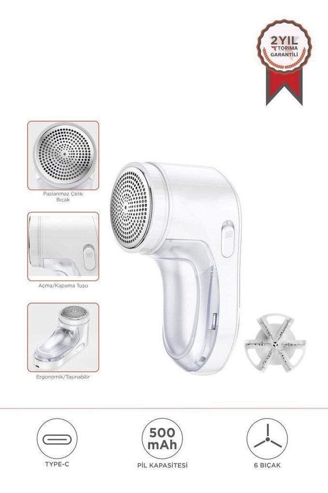 Beyaz renkli tüy alma makinesi 6 paslanmaz çelik bıçak, 500 mAh pil kapasitesi ve Type-C şarj girişine sahiptir. Ergonomik tutuşlu, 2 yıl garanti ile.
