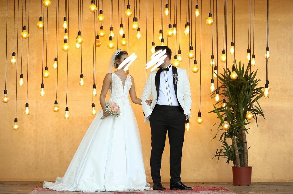 Beyaz, A kesim gelinlik, kesik yaka ve ince askılı kollara sahip, modern klasik tarzda ve normal bedende.