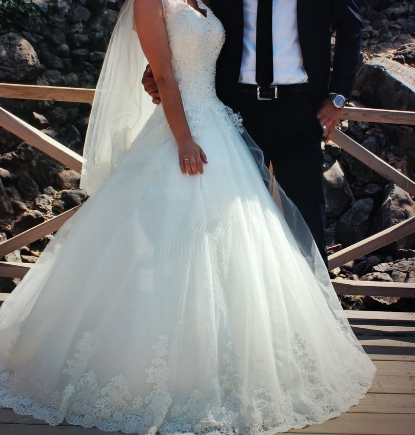 Beyaz A Kesim Gelinlik ( kuru temizlemeye verilmeli)