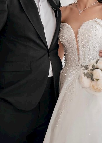 Beyaz, helen model bir gelinlik sadece 1 kez giyildi uzun kuyruğu var inci detaylı ve taş işlemeli özel dikim bir gelinlik. 2 duvak mevcut birisi resimde göründüğü gibi 3 metre diğeri ise kısa ben çok severek aşık olarak giydiğim bi gelinlik oldu alıcısına şimdiden hayırlı olsun ❤️