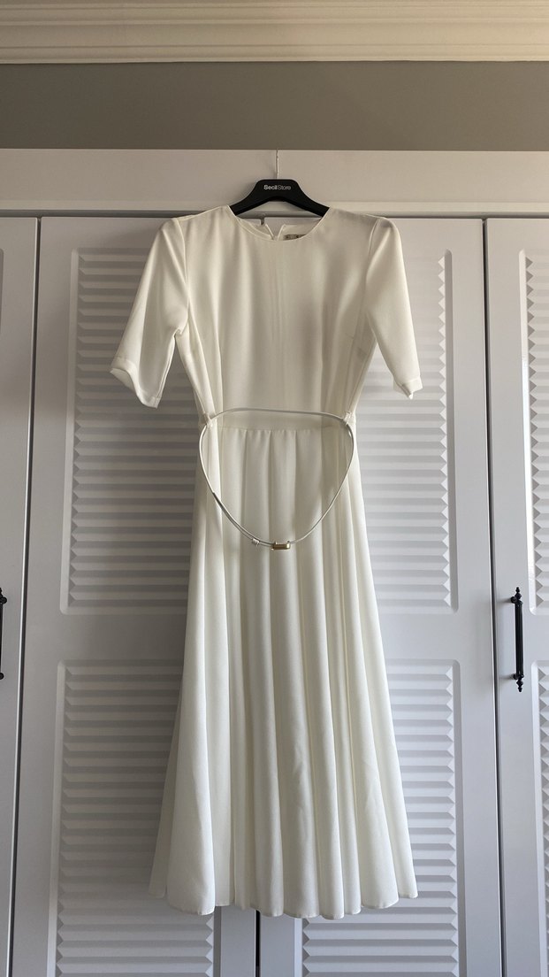 Ben nikahta kullandım aşırı tatlı bir elbise dekoltesi yok Yine bence nikah veya nişan beyaz elbise arayışında tercih edilebilir S-m uyumlu