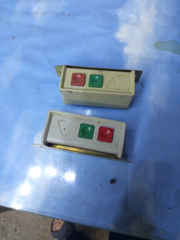 Kırmızı ve yeşil düğmeli beyaz elektrik açma/kapama anahtarları. Kompakt tasarım, kolay montaj sağlar. ⚡