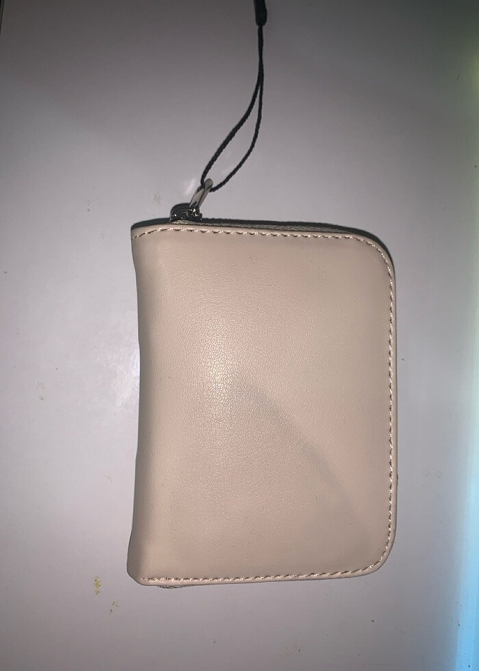 Tek fermuarlı ince beyaz cüzdan fermuarında herhangi bi sorun yoktur hiç kullanılmamıştır içerisindeki sünger bile mevcut fotoğrafta ilk resimde görülen ufak bir defosu vardır