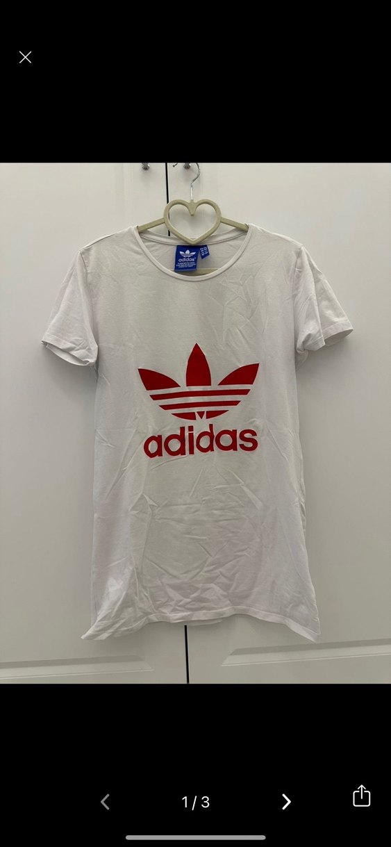 Beyaz, kısa kollu ve önünde renkli Adidas baskısı bulunan, fitted kesim kadın tişörtü. Yuvarlak yaka ve normal midi boy ile rahat ve şık dış mekan kullanımı için uygundur. Orjinalmi bilmiyorum