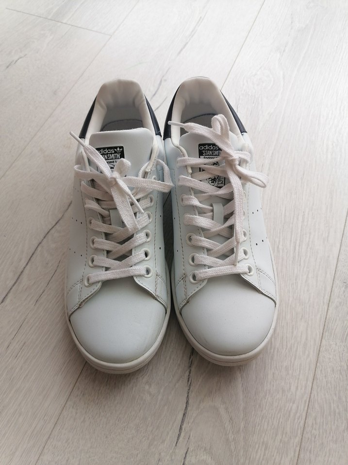 Beyaz Adidas erkek sneakers, klasik tasarım ve kauçuk taban ile günlük kullanıma uygun. 42 numaradır