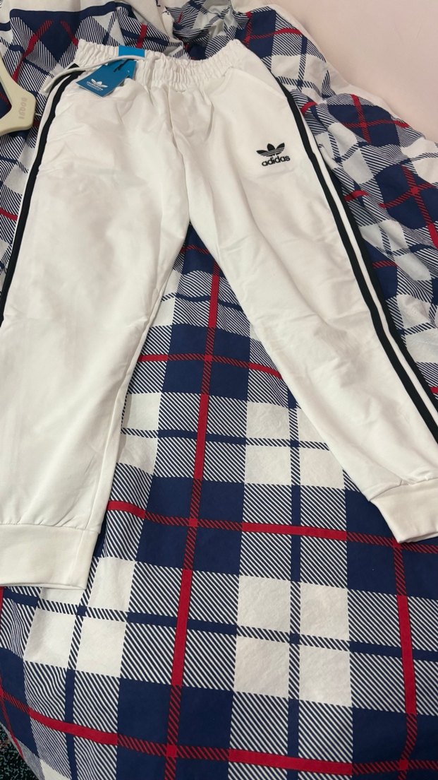 Elastik bel ve yan şeritlere sahip beyaz Adidas outdoor eşofman altı, konforlu regular fit, sentetik kumaştan üretilmiştir. Günlük kullanıma uygundur.