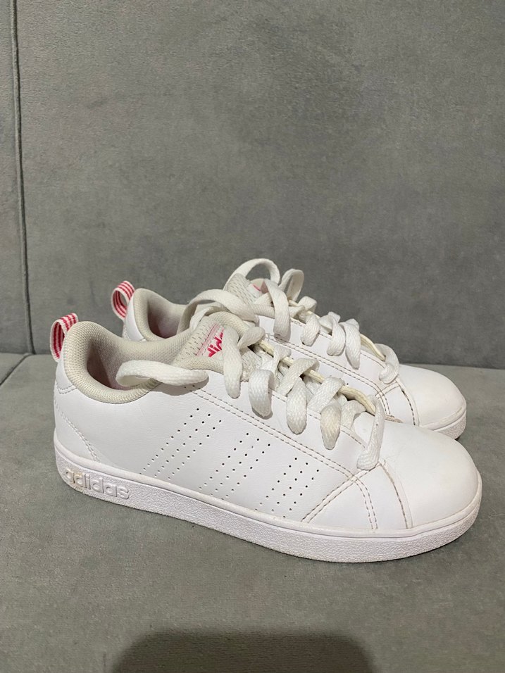 beyaz Adidas spor ayakkabılar, bağcıklı tasarım ve kauçuk tabanıyla rahatlık ve trend athleisure görünüm sunar. Orijinal