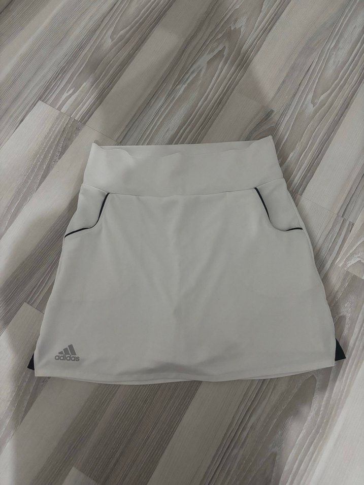 Bu beyaz Adidas mini etek, spor ve athleisure için tasarlanmış, sentetik kumaştan yapılmış, hafif pile detaylı ve vücuda oturan bir modeldir. Yan cepleri vardır. ⚽