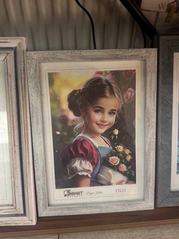 15x21 cm boyutunda fotoğraflar için beyaz ahşap çerçeve, hafif renk tonu ile sade bir görünüm sunar.