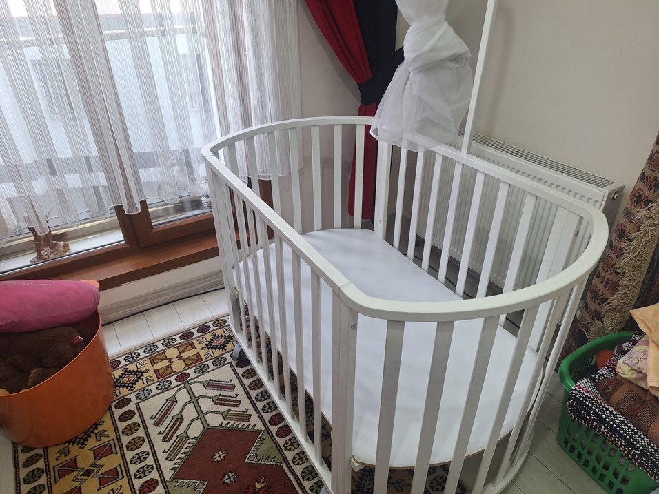 Beyaz bebek yatağı park yatağı beşik olarak kullanılabilir. Hiç kullanılmadı yatağı da beraber şekilde satıştadır. Sineklik ve perdeside mevcuttur Ankara içi teslim edilir e bebekden alınmıştır