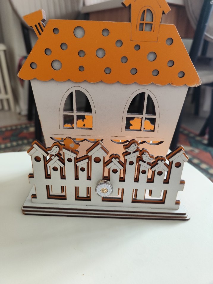 Kesme pencereleri ve detaylı çiti olan beyaz ahşap ev dekoru, mekana sıcak bir hava katar.
