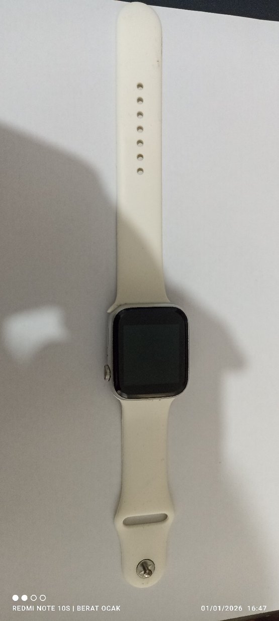 Beyaz kayışa sahip bu akıllı saat, şık ve modern bir görünüme sahiptir. Ayarlanabilir kayış delikleri konfor sağlar. Sadece şarj aleti yoktur.⌚