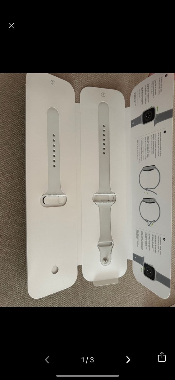 Gri detaylı beyaz akıllı saat kayışı, rahat kullanım ve kolay ayar imkanı sunar. Çeşitli akıllı saat modelleriyle uyumludur. ⌚ 45 mm saaten çıkmıştır hiç kullanılmamış yerinden bile sökülmemiştir kokusu üzerinde