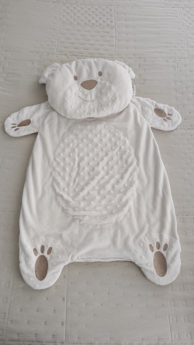 Nakışlı ayıcık detayları ve dokulu ön yüzü olan yumuşak, sıcak beyaz bebek alt açma minderi
