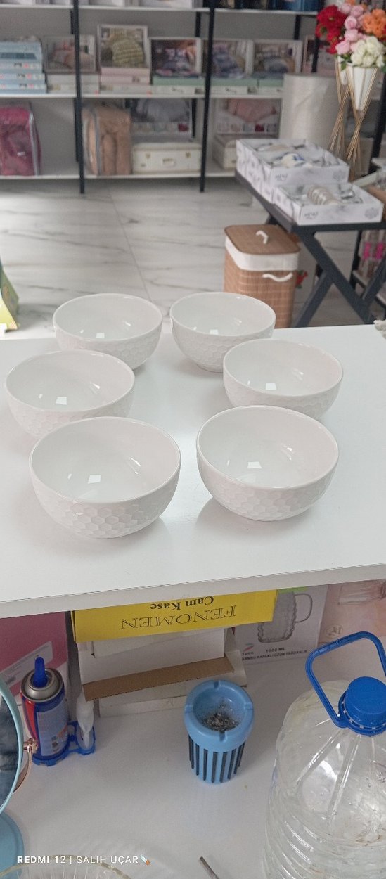 Dış yüzeyi hafif dokulu, içi parlak beyaz renkte altı adet kase seti. Çeşitli yiyecekler için uygundur.