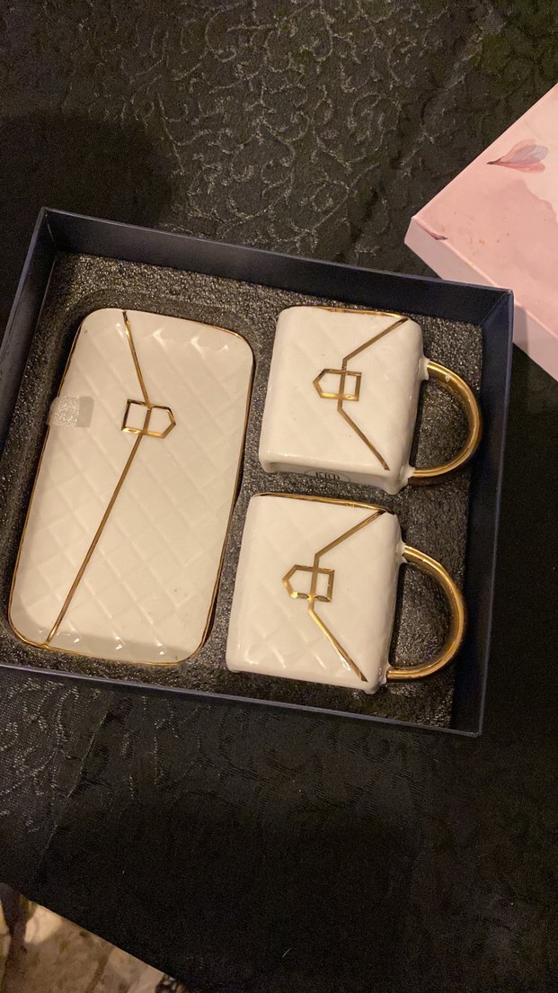 Altın detaylı kulpları ve kapitone desenli tabaklarıyla beyaz 2'li fincan seti. Şık sunumlar için idealdir. ☕