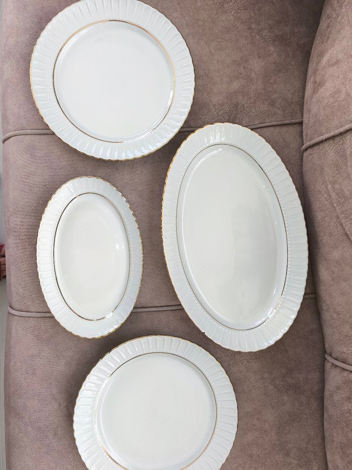 2 servis tabağı 1 büyük kayık tabak 1 küçük kayık tabak büyük servis tabağına minik kırık var,kullanıma engeli yok.Fiyata yansıttım. pasta tabakları için ayrıca fiyat sorunuz.