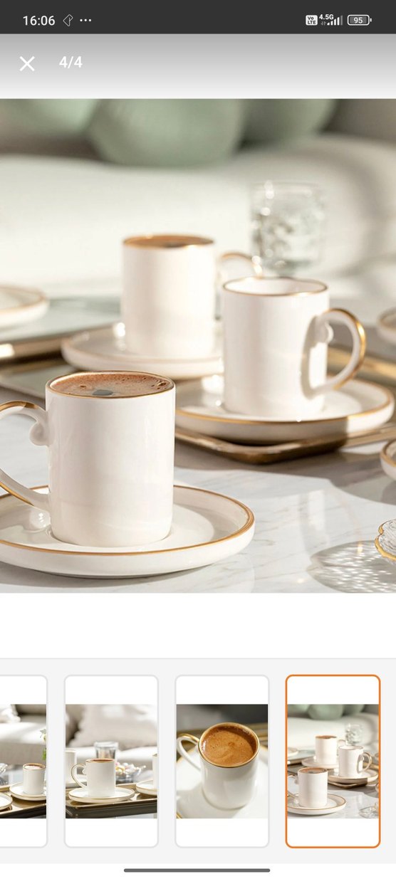 Altın kenarlı beyaz seramik fincanlar, uyumlu tabaklarla birlikte kahve veya çay servisine uygun. 12 parça☕