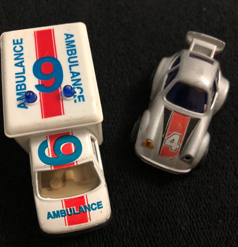BİLGİLER SON RESİMDE MEVCUT Kırmızı çizgili ve mavi "AMBULANCE" yazılı beyaz oyuncak ambulans arabasıdır. Porshe taksi işe ikili fiyatıdır