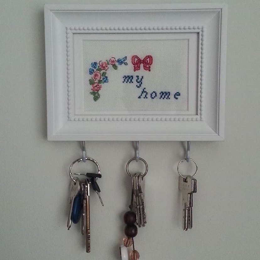 Nakışlı "my home" yazısı ve çiçek desenli beyaz anahtarlık askısı, üç kanca ile anahtarlarınızı düzenlemeye yardımcı olur. Pastel renkler yumuşak bir görünüm sağlar. ️istediğiniz sayıda ölçüde yapabilirim