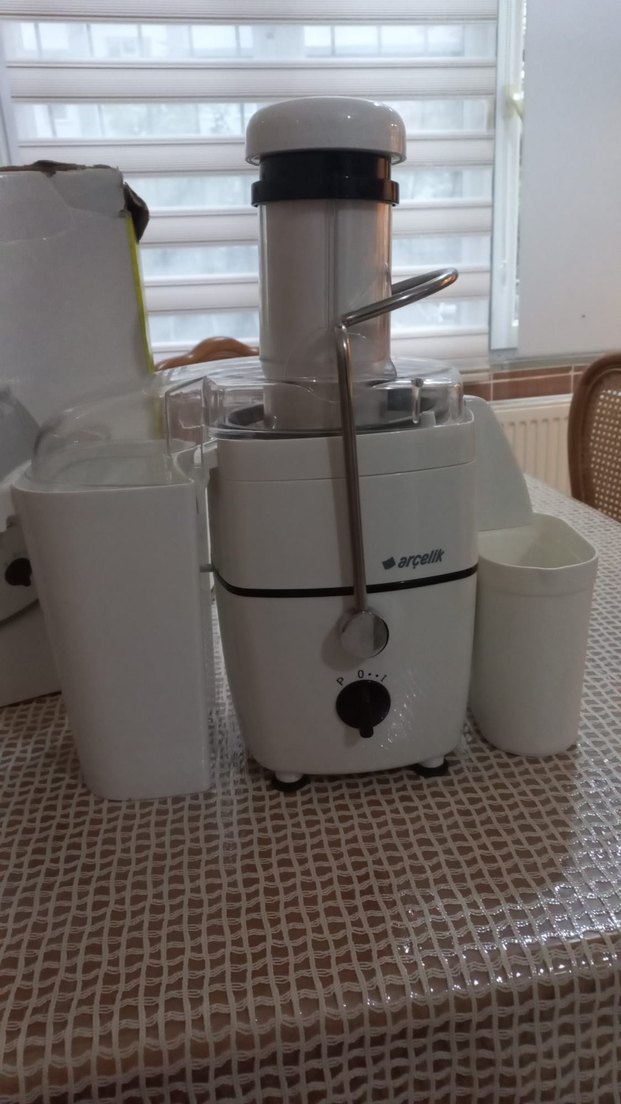 Beyaz Arçelik katı meyve sıkacağı geniş besleme ağzı ve güvenli kilitleme kolu ile donatılmıştır. Basit kadran kontrolü ve iki çıkarılabilir kabı vardır.