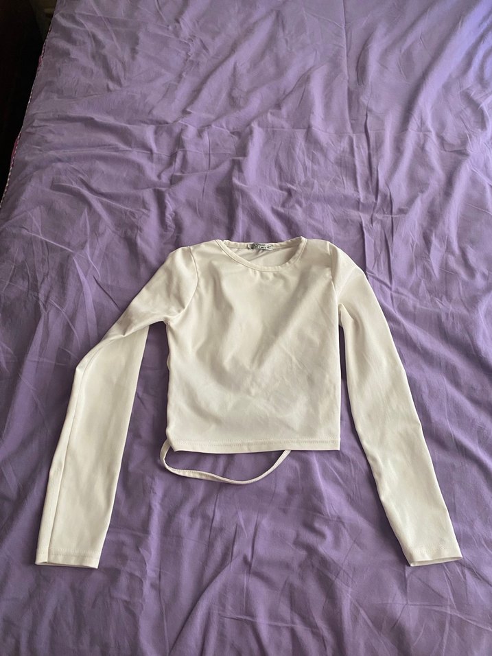 Beyaz arkası dekolteli uzun kollu bluz 1 kez giyildi xs ve s beden uyumludur