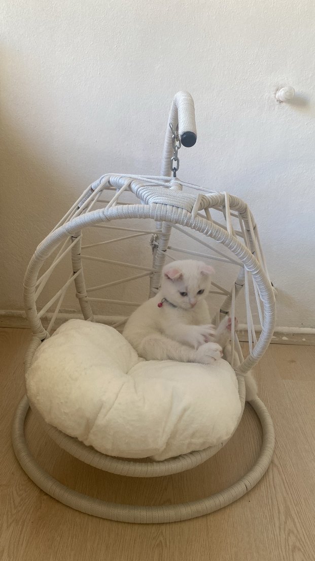 Yumuşak yastıklı beyaz asılabilir kedi yuvası, konfor ve dinlenme için tasarlanmıştır. Pastel tonlar her dekorla uyumludur. Kedim kullanmadığından satıyorum birkaç yerinde leke mevcut