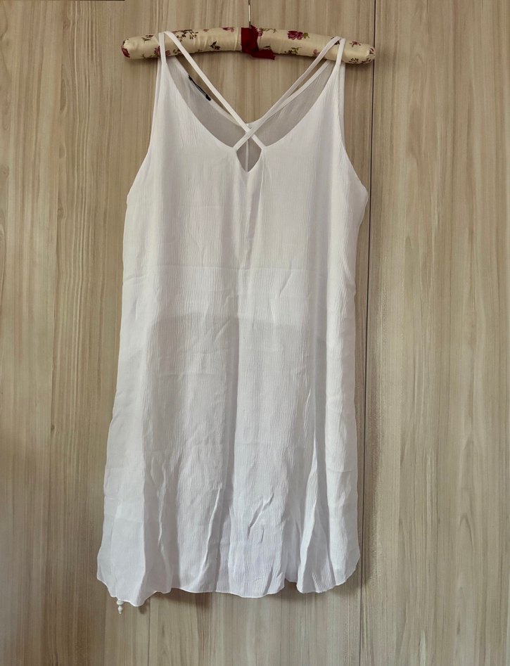 Beyaz, %100 viskon mini elbise, kolsuz ve V yakalıdır. Rahat kesimi, içindeki ekstra astarı, çapraz yakası ile şık, desen içermeyen yapısıyla bohem ve minimalist tarz sunar. Günlük kullanıma veya plaj kullanımına uygundur. Markayı temsili seçtim.