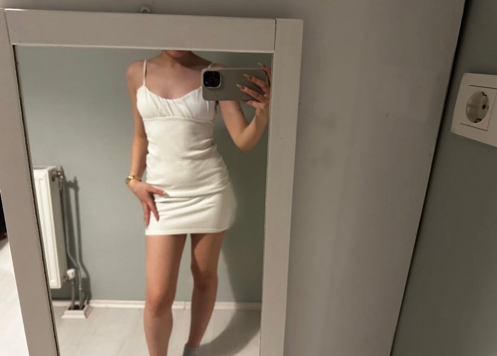 İnce askılı ve straplez yakalı, satenimsi dokulu beyaz mini elbise, şık ve rahat bir görünüm sunar. ✨