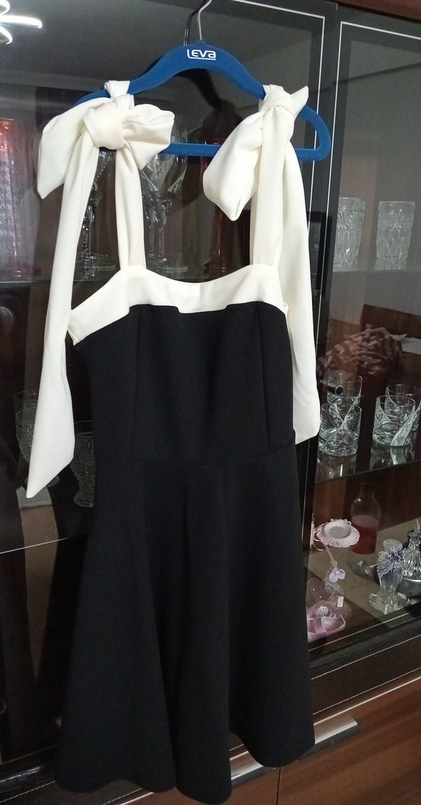 Beyaz Askılı Siyah Midi Elbise