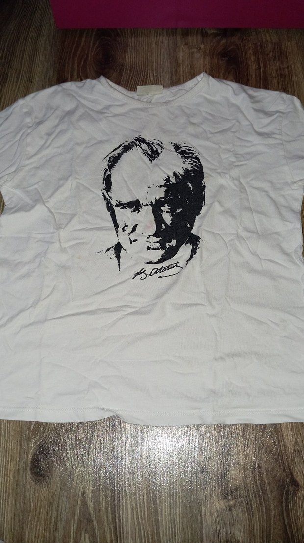 Beyaz Atatürk Baskılı Kısa Kollu Tişört