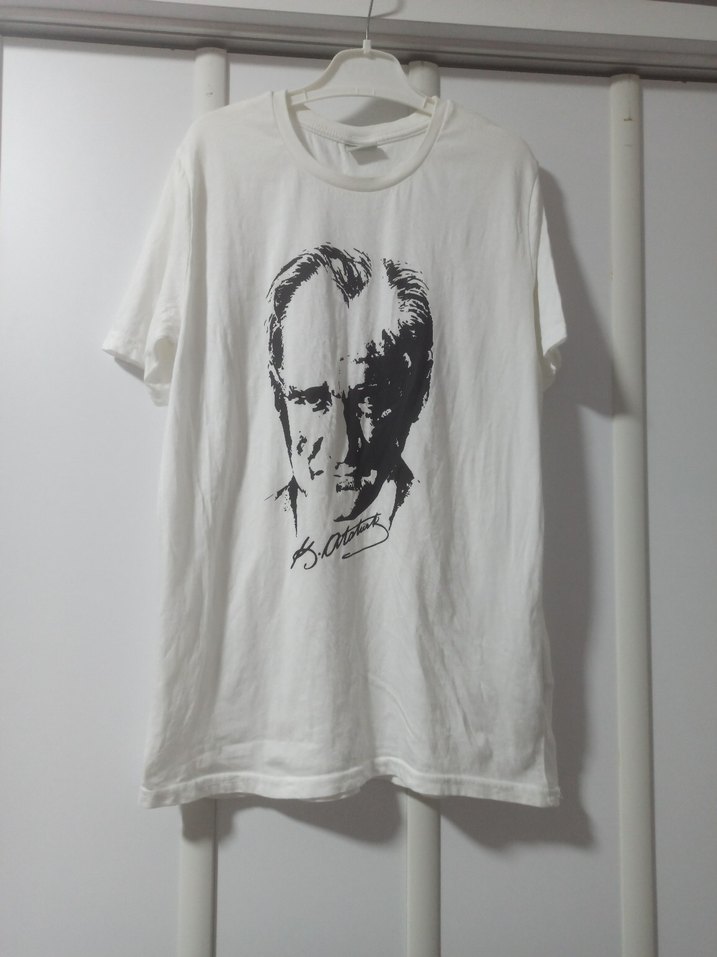 Atatürk baskılı beyaz pamuklu tişört, kısa kollu ve yuvarlak yaka.11 12 yaş sadece 1 gösteride kullanıldı ölçüleri fotoda iade kabul edilmemektedir