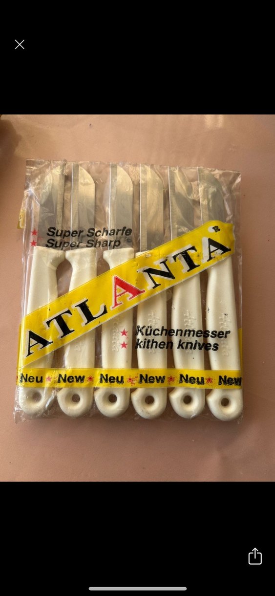 Altı adet beyaz saplı, super keskin mutfak bıçağı seti. Marka ATLANTA, yeni ve mutfak kullanımı için uygun.