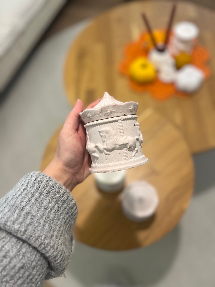 Beyaz renkte, atların yer aldığı dönen atlı karınca figürini. Detaylı tasarımıyla dekorasyona eğlenceli bir dokunuş katar.