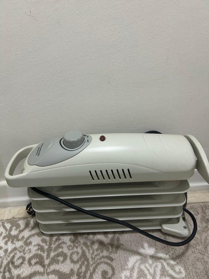 Beyaz elektrikli ısıtıcı, ayarlanabilir sıcaklık kontrolü ve kompakt tasarıma sahiptir. Basit düğme ve güç göstergesi ile etkili ısı sağlar.