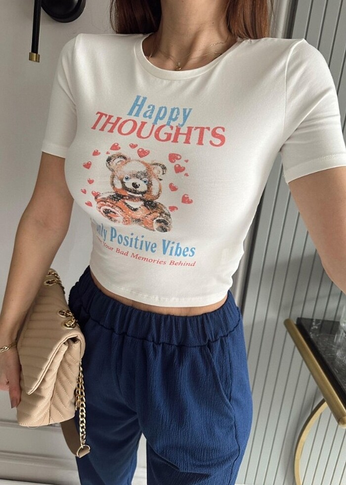Beyaz ayıcık baskılı crop body
